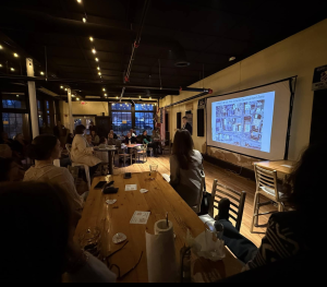 Volunteer-driven improvements were a major theme of the presentation. A Design Committee coordinated community input sessions, relocated and planted planters, and partnered with local students to decorate storefront windows. Second Saturday Service projects logged more than 140 volunteer hours, collecting over 25 bags of trash, repainting 32 light poles, and completing landscaping work at key downtown locations.