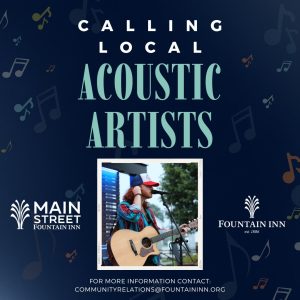 Acoustic musicians from Fountain Inn and surrounding areas are encouraged to apply.