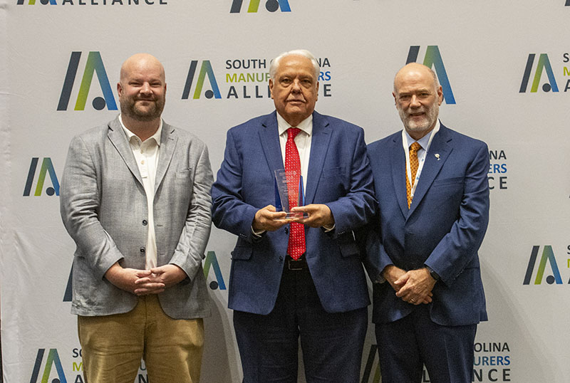 James Richter, Director of Communications and Research, SCMA; Jimmy Hutto, President and CEO, Southeastern Industrial Inc and the Chuck Spangler Outstanding Manufacturing Lifetime Service Award recipient; Andy Carr, President and CEO, SCMEP