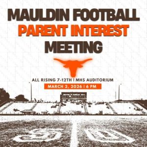 March 1, 2026Mauldin High School will host a football parent interest meeting for all new and returning players today, Monday, March 2, 2026. The meeting is scheduled to begin at 6:00 p.m. in the school auditorium.