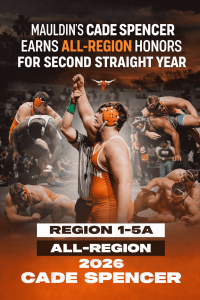 Spencer, who has anchored Mauldin’s upper weight classes throughout his high school career, has been a consistent force against some of the top competition in the Upstate. Competing in one of the state’s toughest classifications, he has battled through demanding dual meets and high-profile tournaments to once again earn recognition among the region’s best.