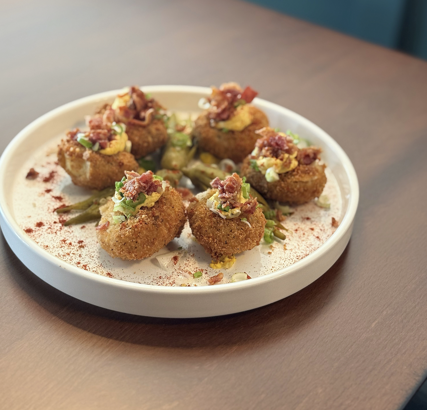 The restaurant, located at 101 East Laurens Street, delivers a dining experience that blends Southern elegance with chef-driven creativity. Dishes already earning rave reviews include the crispy fried deviled eggs, creamy pimento cheese dip, shrimp and polenta (their signature take on shrimp and grits), the grilled salmon filet, a juicy frenched pork chop topped with their signature peach BBQ sauce, and their 28 day dry aged black angus burger.