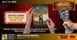 This all-ages film is part of the Laurens County Library System’s Summer Reading Program and promises a magical evening of adventure, romance, and laughter as Wesley sets out to rescue Princess Buttercup from the clutches of the nefarious Prince Humperdinck.