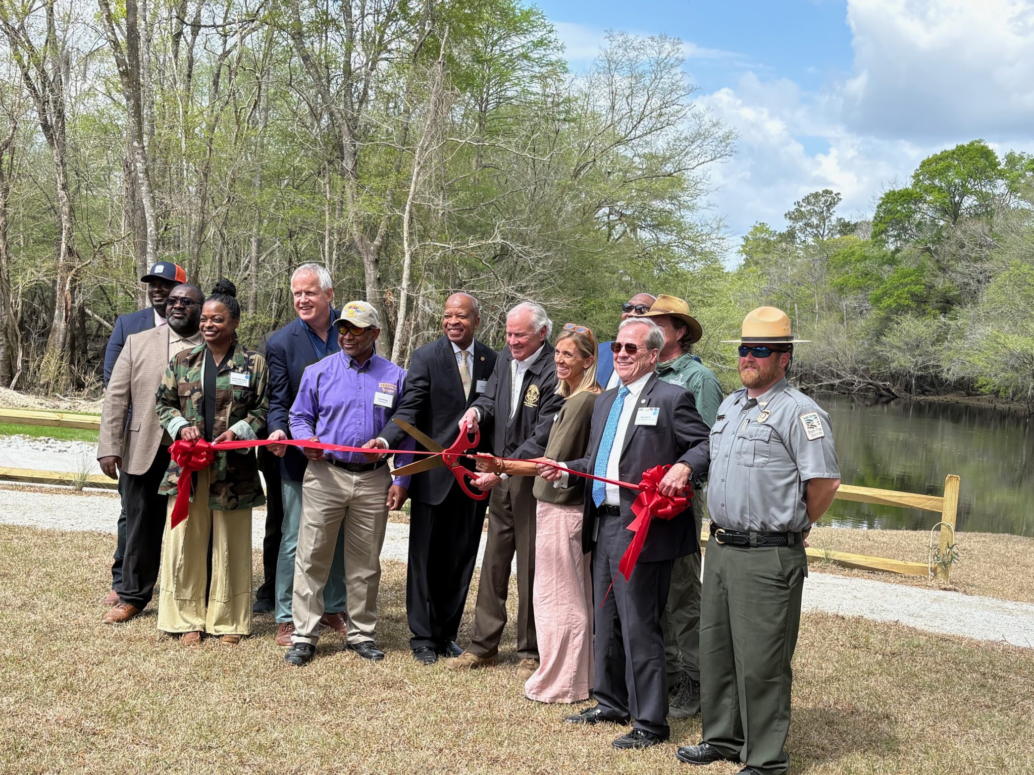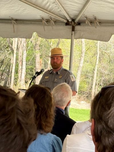 Among the other speakers at the ribbon-cutting celebration were Chris Crolley, founder of Coastal Expeditions and Mayor of the Town of Awendaw; Jayson Sellers, who is new Black River State Park Manager; Erik Kulleseid, president and CEO of the Open Space Institute; Duane Parrish, SCPRT director; State Senator Ronnie Saab; and South Carolina Governor Henry McMaster, who was credited for his efforts to preserve more natural lands during his tenure than any other governor.