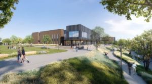Site enhancements play a key role in this transformation. A new campus green will bridge the area between the new Pickens Hall and adjacent Anderson Hall and a revitalized campus spine improves pedestrian connectivity and encourages a more vibrant student experience.