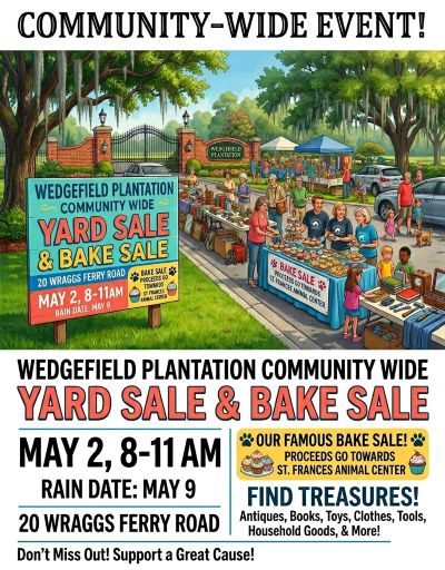 Find Treasures: Antiques, books, toys, clothes, furniture, tools, household items and more! Proceeds from our Bake Sale will benefit St. Frances Animal Shelter. Rain date: May 9