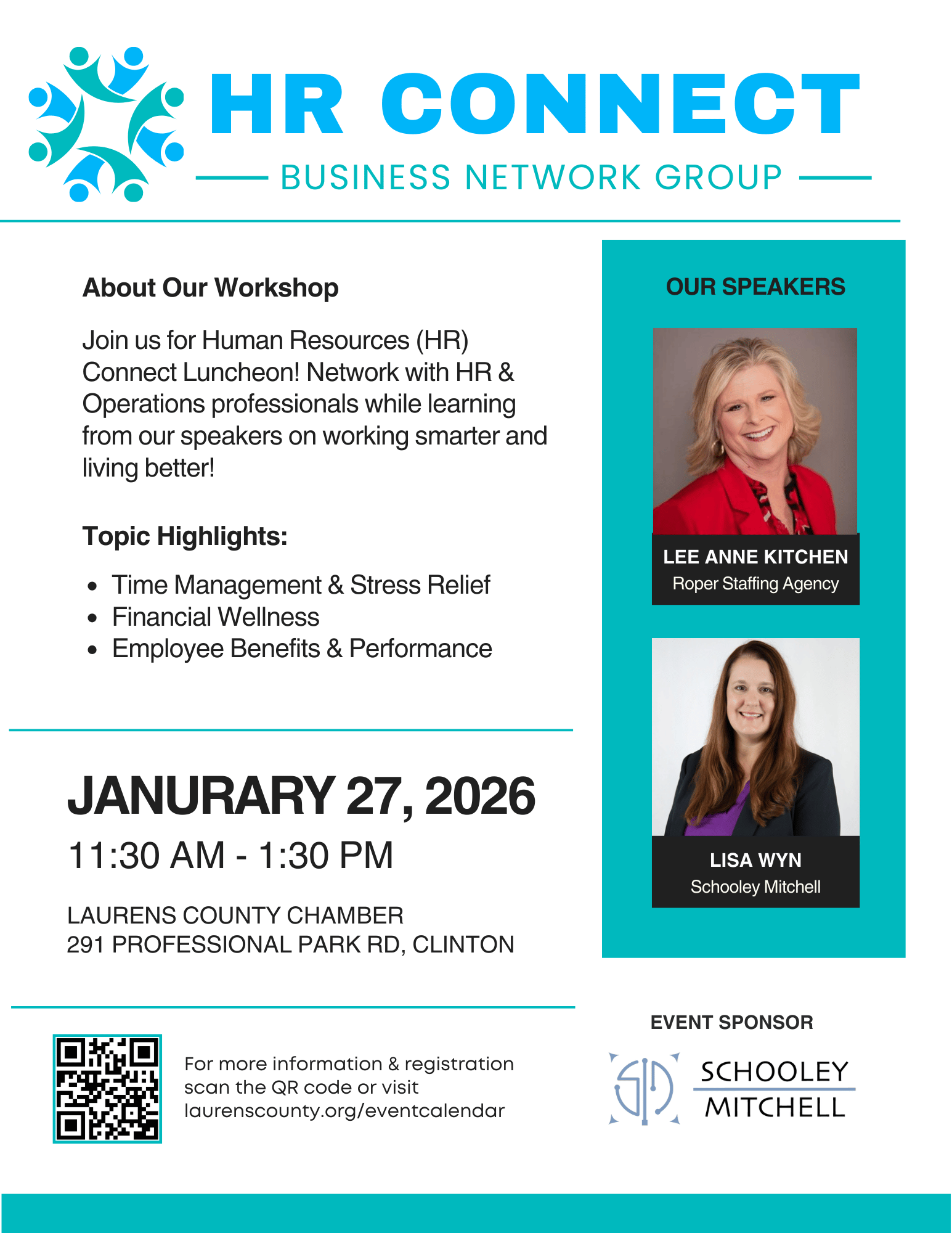 The Laurens County Chamber of Commerce, together with our HR Connect volunteer committee, hosts quarterly HR Connect luncheons for local HR and Operations professionals. These gatherings offer a welcoming space…