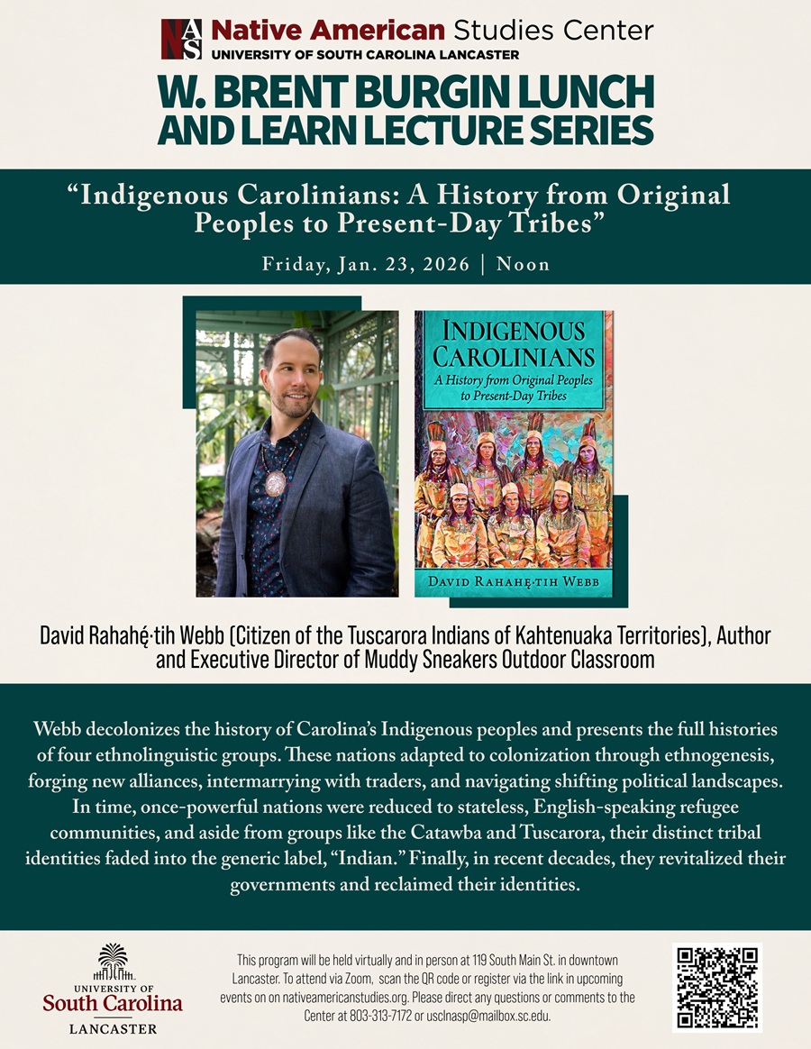 “Indigenous Carolinians: A History from Original Peoples to Present-Day Tribes” David Rahahę·tih Webb (Citizen of the Tuscarora Indians of Kahtenuaka Territories), Author and Executive Director of Muddy Sneakers Outdoor Classroom… |