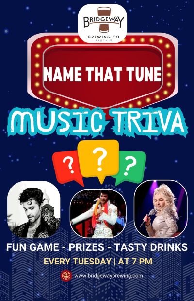 Every Tuesday Name That Tune Trivia hosted by QuizMaster Mike!! Loads of fun music and prizes! |