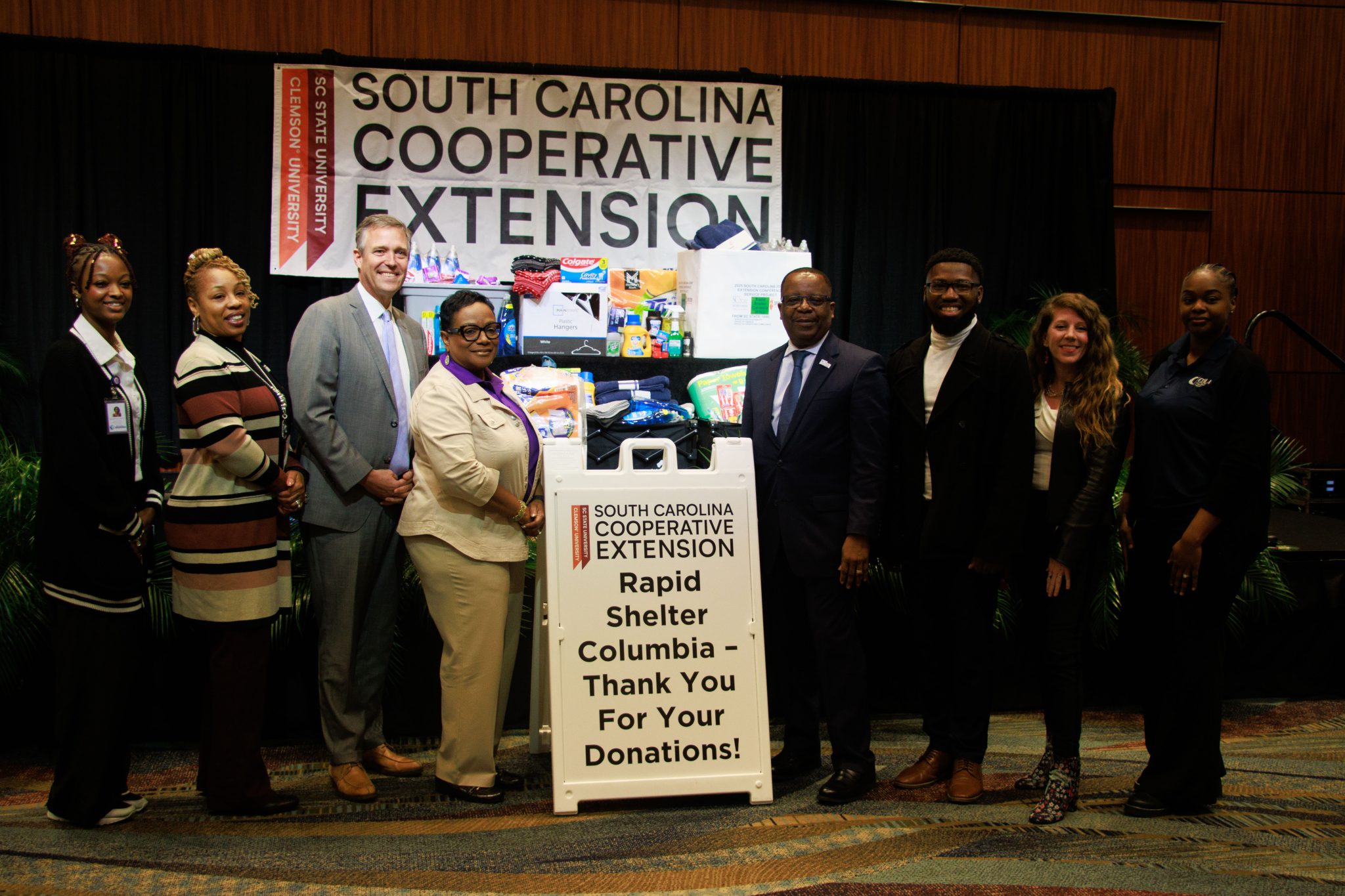 February 14, 2025More than 350 Cooperative Extension professionals from across South Carolina came together for a statewide service project to support Rapid Shelter Columbia during the second biennial South Carolina Joint Cooperative Extension Conference, which is held from February 12-14, 2025, at the Columbia Metropolitan Convention Center, 1101 Lincoln St. The event, which brings together Cooperative Extension professionals from the state’s two land-grant universities – SC State University and Clemson University – features a series of sessions, presentations and networking opportunities, but also served as a platform for local outreach, with a donation of essential supplies to Rapid Shelter Columbia aimed at improving the lives of homeless individuals in the city.