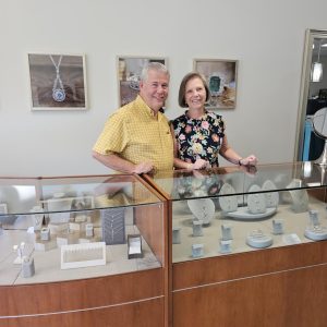 Mike’s interest in jewelry design began at a young age, experimenting with stone cutting and silversmithing before formally studying the craft. After moving to Greenville, where Wanda is from, the two built the business side by side—growing steadily through referrals and a reputation for thoughtful, custom work.