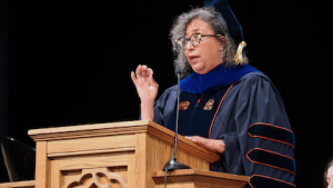 “I am a soldier in a small army of humanities scholars who labor to bring light to this great darkness,” she said. “I stand here today to assure you that uncomfortable truths have been my constant companions—and my greatest teachers.”