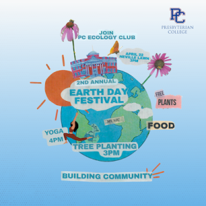 The Earth Day Festival will run from 3 to 5 p.m., with participation from local environmental organizations including Keep Laurens County Beautiful and the Joe Adair Outdoor Education Center. In addition, PC student organizations will host booths and activities. Festival-goers can enjoy live music, grab a grilled cheese sandwich, and take home a free plant.