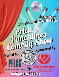 March 4, 2026PFLAG Pawleys Island will host the 5th Annual Pride & Punchlines Comedy Show on Saturday, April 25th at the historic Winyah Auditorium in Georgetown, SC.