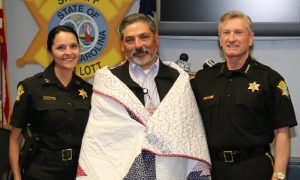 April 5, 2019COLUMBIA, S.C. – Richland County Sheriff’s Dept. (RCSD) Investigator Armando Yturria, a retired U.S. Army Special Forces sergeant major, was recognized by the national Quilts of Valor Foundation for his distinguished military service as a special operations leader, Thurs., Apr. 4.