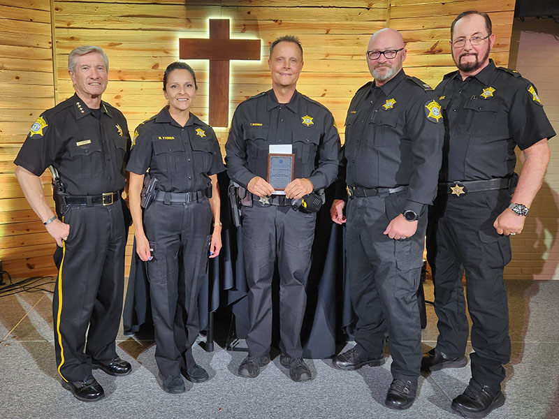 Pictured (L-R) are Sheriff Leon Lott, Deputy Chief Maria Yturria, SRO Todd Minemier, Captain David Adams, and Corporal James Reese.