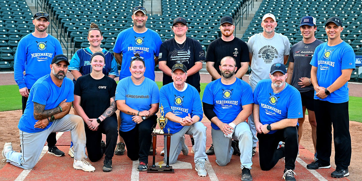 The RCSD Peacemakers played SLED in game-one, winning 8-2. RCSD then played CPD and won 7-5, positioning the Peacemakers in “the winners bracket” as the only undefeated team. RCSD then lost by one run to SLED in game-three but played SLED again for the tournament title and won.