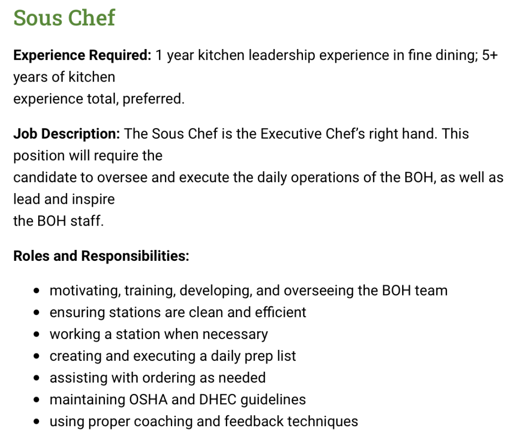 Owners Caleb and Jess Satterfield have been working hard to bring their vision for the restaurant to fruition. “A great restaurant needs quality staff from the front of the house to the kitchen,” said Jess Satterfield. “Putting together the right team is essential to executing our vision to provide a unique fine dining experience in Laurens.”