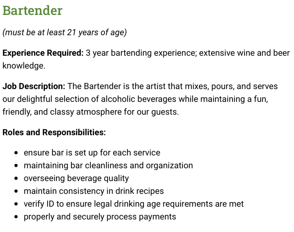 The hiring process has begun, and you can be a part of their dream team. Below is a list of the positions. Click on the images below to see a full description of each position and the requirements for each one.