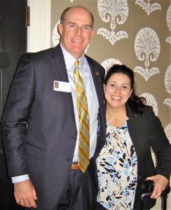 November 15, 2018Capital Rotary members got a “bulls and bears” look at the economy and stock/bond market when Nicole Dill (in photo with Rotarian Stephen West) was the club’s guest speaker Nov. 14. Dill, a Chapin resident, works with JP Morgan Asset Management and has 20 years of experience in financial services. In her briefing she said (1) the US economy has not had problem inflation for 30 years, a trend that will continue; (2) another recession is expected in the future, likely 2021or 2022; (3) 1,300 “baby boomers” will be retiring each day for the next decade, helping to fuel labor force needs that could keep the nation at or near full employment; (4) the Federal Reserve Board is predicted to raise interest rates in December 2018 and March 2019, and perhaps in June 2019, but probably not in September 2019; (5) the US has a consumer-driver economy, with 70% of our growth due to consumption: people buying things; (6) recent mid-term elections helped restore a more balanced government divide between Democrats and Republicans, which has been the nation’s norm 61% of the time; and (7) investors need to rebalance their accounts yearly because of national and international economic change.