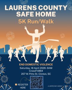February 15, 2026Laurens County residents are invited to lace up their running shoes and take a stand against domestic violence at the Safe Home 5K Run/Walk to End Domestic Violence on Saturday, April 18, 2026, beginning at 9:00 a.m.