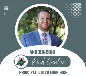 “I am deeply appreciative of the opportunity to lead a school with a legacy of high performance like Dutch Fork High School, and I am delighted to be named its principal,” Gunter said. “I am eager to partner with our dedicated students, engaged parents, and exceptional staff to ensure continued excellence in all we do.”