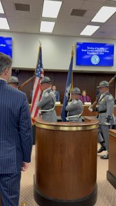 The event, presided over by South Carolina Secretary of State Mark Hammond, began at 11 a.m. and followed a formal and ceremonial agenda. The South Carolina Highway Patrol Honor Guard posted the colors, and Senator J.D. Chaplin led attendees in the Pledge of Allegiance. The invocation was delivered by John Matthews, Pastor of Cornerstone Fellowship Freewill Baptist Church, while Charles Seastrunk, Jr., Chaplain of the South Carolina House of Representatives, provided the benediction.