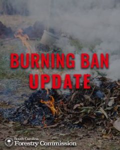 Just because the burning ban is being lifted, it does not mean the fire danger is gone, said SCFC Fire Chief Darryl Jones. Most of the state is still very dry, and the risk of fires igniting easily remains. Anyone who has conducted a burn recently should continue to monitor it closely because of the potential for it to reignite.