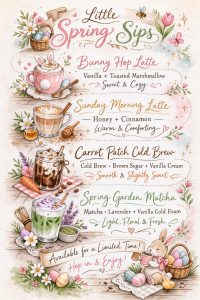 The seasonal lineup offers something for nearly every taste, from rich and comforting to light and refreshing, making it an ideal stop for a morning pick-me-up or an afternoon treat while enjoying the sunshine. Customers are encouraged to stop by to experience the new flavors as we ease into spring.