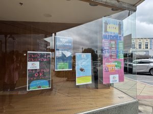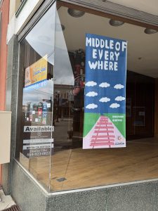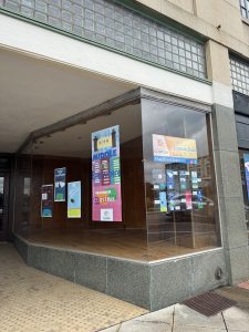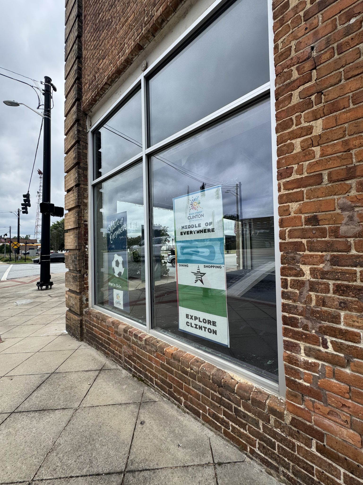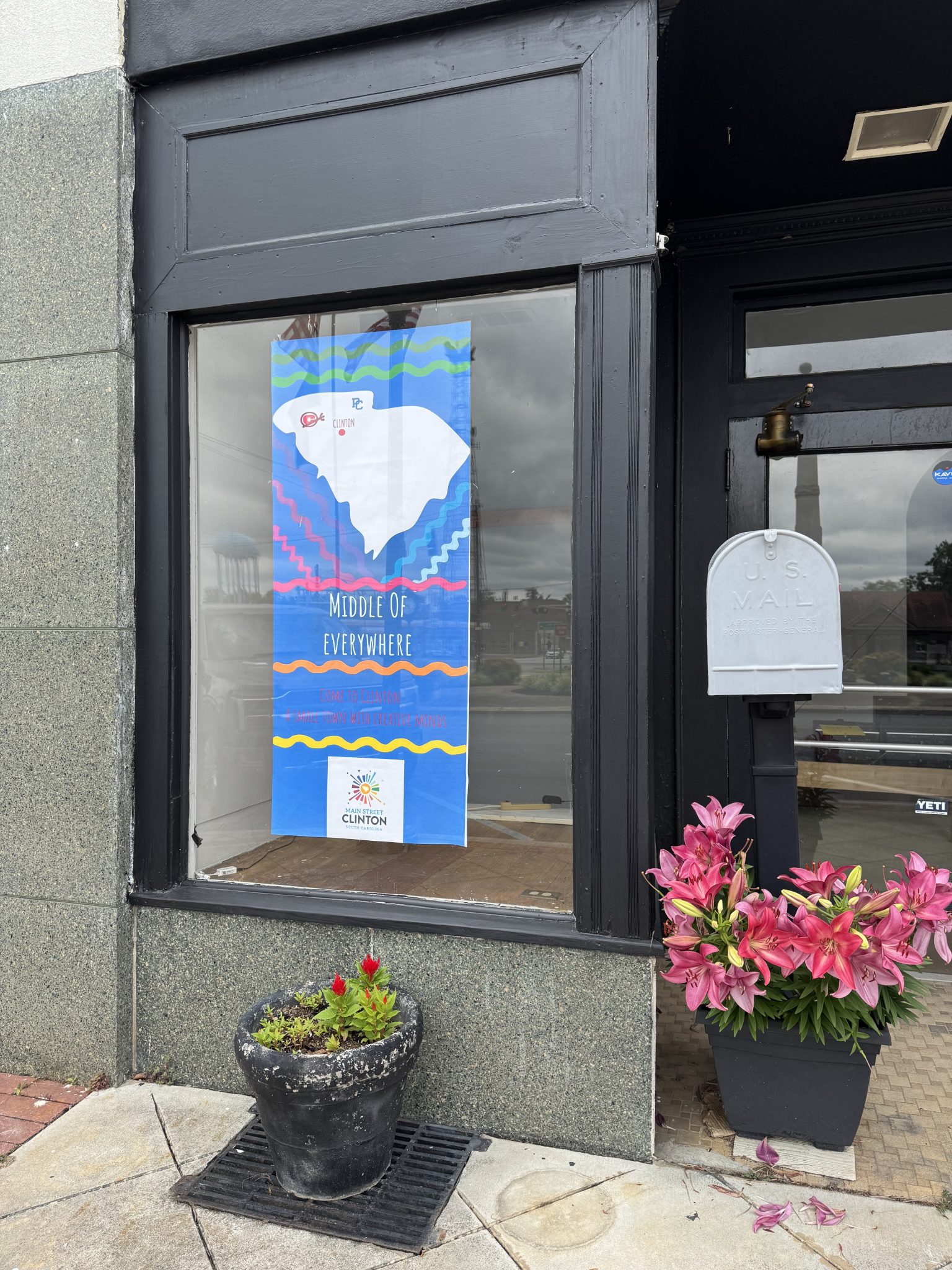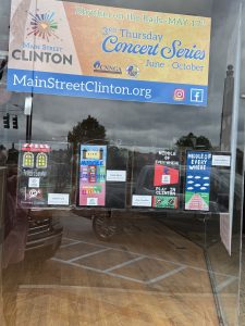 The winning designs were transformed into vibrant banners and placed in several empty storefronts throughout downtown Clinton. The banners went up just before Rhythm on the Rails, and if you’ve strolled through the area recently, you may have already admired them—especially the standout display on the corner.