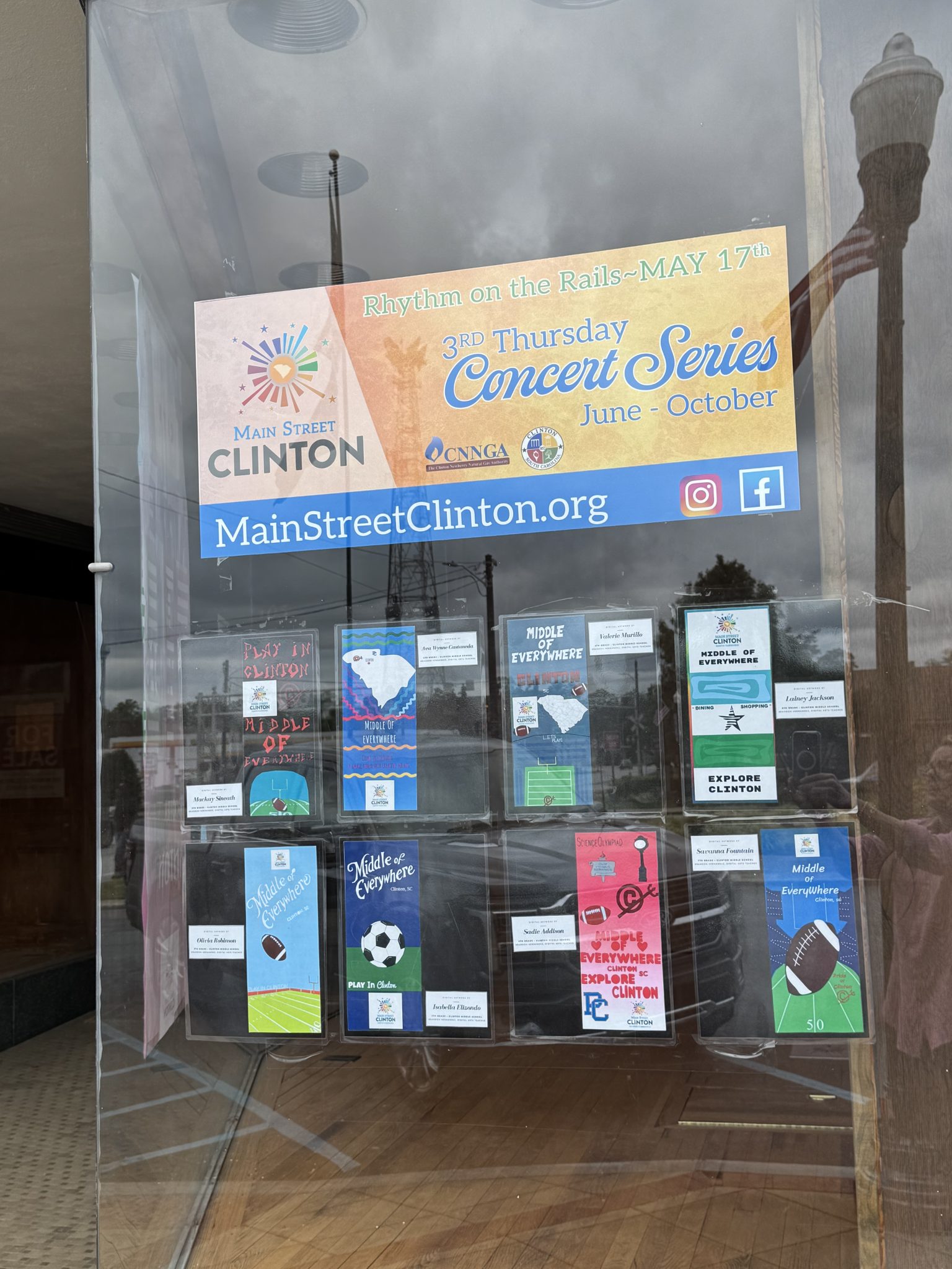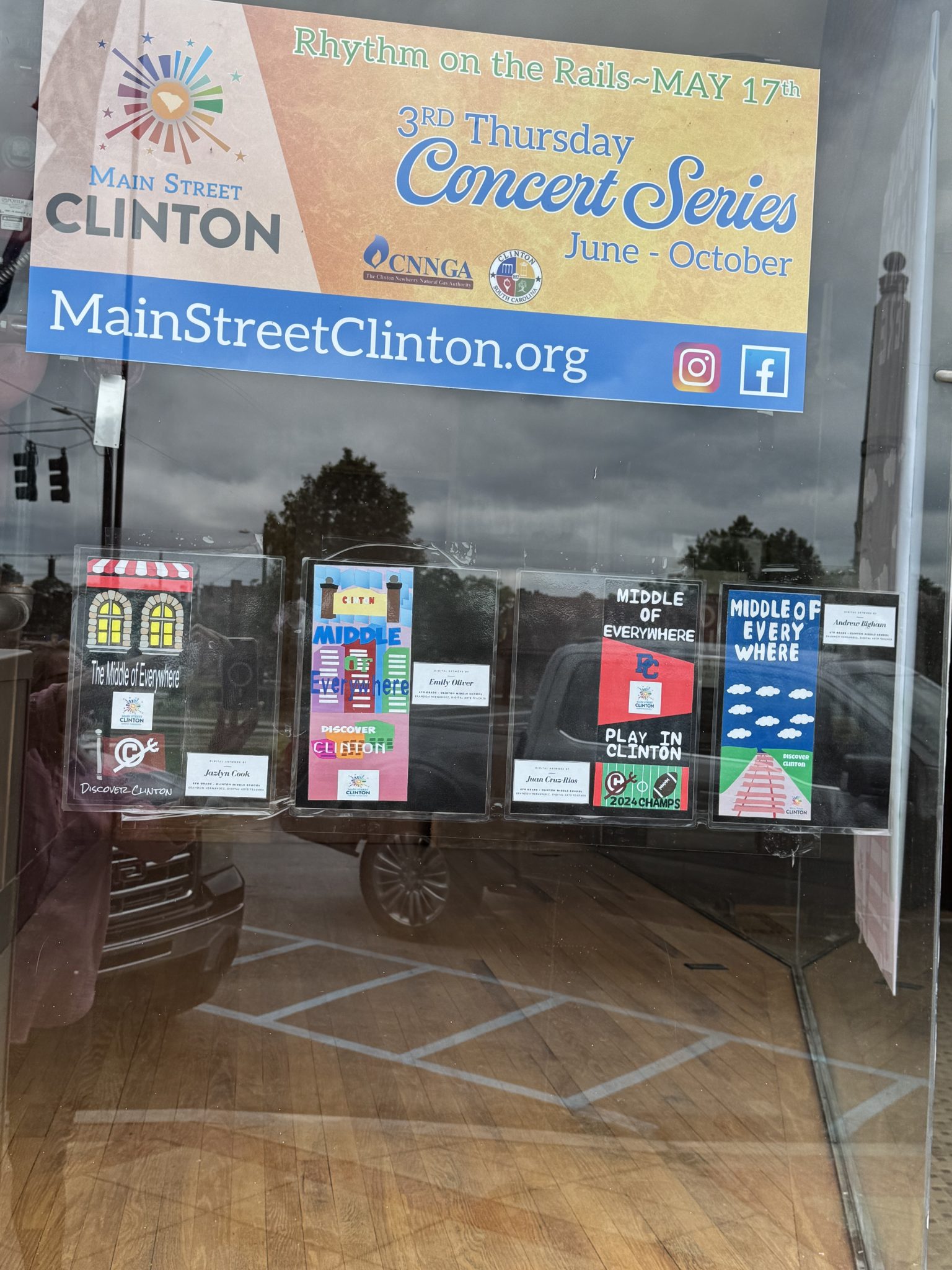 Students from Clinton Middle School’s digital arts classes, led by teacher Mr. Brandon Hernandez, were invited to submit artwork reflecting the theme: “Clinton, the Middle of Everywhere.” The goal? Celebrate Clinton as a place where residents and visitors can dine, shop, and explore—all in one welcoming downtown.