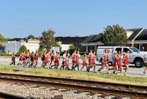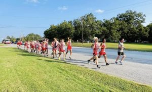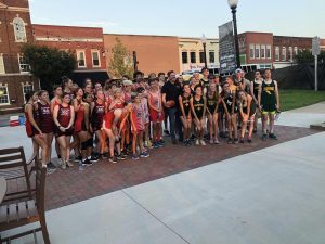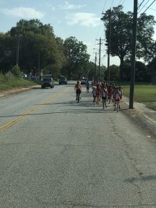 The Clinton Cross Country Team left Wilder Stadium at 6:00 pm on Thursday with the game ball and ran it 5 miles to Clemson Eye. The Red Devils handed the ball off to the Raider Cross Country Team who carried the ball the remaining 5 miles to the square in Laurens.