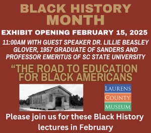 ”The Road to Education for Black Americans“ Exhibit and Talks at the Laurens County Museum