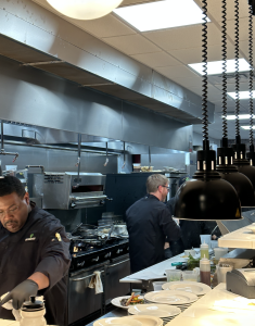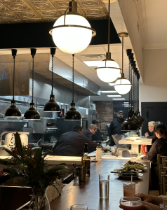 We “buzzed” in Friday night to experience firsthand what they have to offer. True to their vision, owners Caleb and Jessica Satterfield have created a restaurant with the ambiance and menu you would expect in Greenville, but without the drive. Dining within the first two hours of opening the restaurant you would expect glitches and issues but if there were any, there were not noticed by customers. Â The dining room was humming with conversations and nice background music. Many of the tables have a line of sight to the elegant bar and the open kitchen where Chef Caleb and staff were busy creating dishes that as served looked like art and tasted even better.