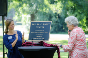 Mr. Cornelson’s wife, Ann Cornelson, has provided immense support for The Read Right Center. Friday, she joined Thornwell leaders in unveiling plaques that will commemorate their gift and the memory of her late husband in The Read Right center.