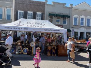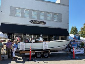 For those who preferred hands-on learning, Dan “the Knot Man” and the Spirit Knot Tyers provided engaging demonstrations for all ages. Attendees could test their newfound skills in the “Six Knot Challenge.” Meanwhile, younger visitors were kept busy with Kid’s Model Boatbuilding, where they constructed and test-sailed their own miniature vessels in a pond set up on Front Street. The featured artist of the show Jeanne O’Neal was also present at The Ship’s Store for poster signings and sales of event-branded merchandise.