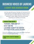 January 17, 2026The Laurens County Chamber of Commerce will host a Laurens County Business Forum on February 17, bringing together business owners and local experts for a moderated, solutions-focused discussion on key…
