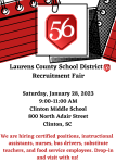 January 25, 2023Laurens County School District 56 is hosting a Recruitment Fair on Saturday, January 28th from 9-11 am at Clinton Middle School (800 N. Adair Street, Clinton). The district is hiring…