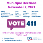 October 20, 2021Ahead of elections this fall, the League of Women Voters of the Columbia Area offers the nonpartisan election resource VOTE411.org. This “one-stop shop” for election information provides simple, helpful tools…