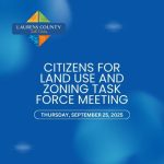 September 24, 2025The Laurens County Citizens for Land Use and Zoning Task Force will convene on Thursday, September 25, 2025, at 6:00 p.m. at the Hillcrest Complex East, located at 105 Bolt…