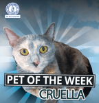 March 15, 2018Meet Animal Services’ new Pet of the Week, Cruella. Cruella is a 1-year-old, blue cream tortie, domestic short-hair mix female. Cruella is not a big fan of other cats but she…