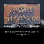 January 4, 2026The Laurens County Chorale will begin rehearsals for its 2026 spring season on Monday, January 12, at 7:00 p.m.Rehearsals will be held at Westminster Presbyterian Church, located at 1387 Highway…