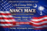 February 23, 2026The Laurens County Republican Party has announced that its scheduled public forum featuring gubernatorial candidate and U.S. Congresswoman Nancy Mace has been postponed after the congresswoman was required to remain…