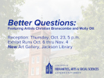 October 15, 2025The community is invited to join artists Christian Branscombe and Molly Ott for a reception and conversation about their exhibit, “Better Questions,” now on display in the Lander Art Gallery.…