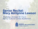 September 30, 2025GREENWOOD, SC – Lander University invites the public to attend a student recital Thursday, Oct. 9, by Mary Ashlynne Lawson, a senior music education major. The program is free and…