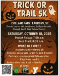 October 5, 2025The countdown is on for one of Laurens’ most festive races of the year. The Trick or Trail 5K will take place on Saturday, October 18, 2025, at Collyar Park,…