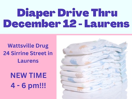December 6, 2023In the spirit of giving and community support, the December Diaper Drive Thru will be held on Tuesday, December 12 in Laurens. This recurring initiative not only provides essential supplies…