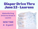 Diaper Drive Thru in Laurens Tuesday (4-6 pm)