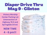 May 2, 2023The next Diaper Drive Thru will be held on Tuesday, May 9 from 4 – 6 pm in Clinton in the Victory Worship Center Parking Lot (at intersection of Highway…