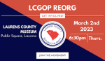 February 26, 2023Every two years, each county Republican Party in South Carolina goes through a process known as ReOrg. The Laurens County Republican Party will reconvene for ReOrg this Thursday, March 2nd…